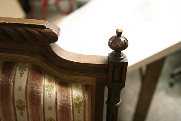 Rosa/Beige/Gestreift, feine Schnitzereien, Öl/ Wachs behandelt.
